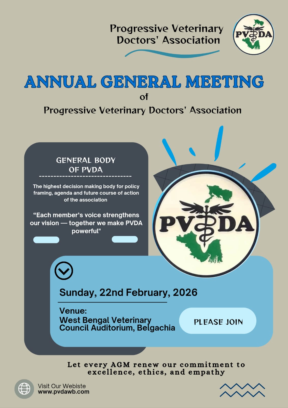 It gives me immense pleasure to welcome you all to the official website of the Progressive Veterinary Doctors’ Association (PVDA). This platform reflects our collective journey, our aspirations, and our unwavering commitment to the veterinary profession and society at large.